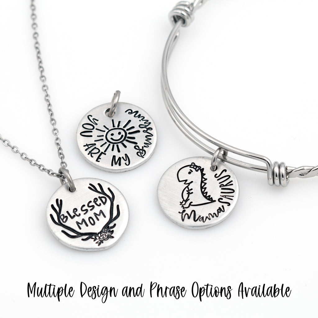 A Piece Of Your Heart: MOM Charm | Necklace | Expandable Bangle Bracelet